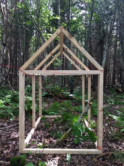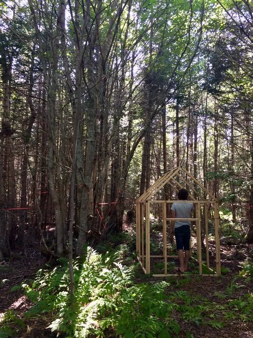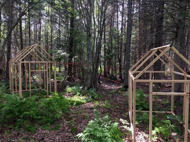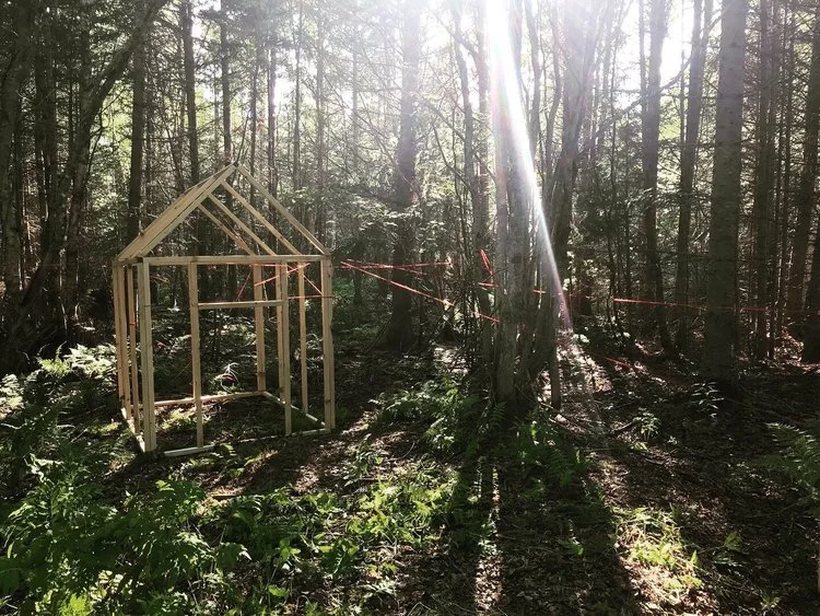 Clew references both its nautical and mythological senses. The white sail tied to the mast of a living tree alludes to the wooden planks that ships—and the Ark—were made of. A single string of red thread winds its way through the houses and forest, and anchors itself to the mast, providing bearings back home. This work also draws on Titian’s painting, Bacchus and Ariadne, where Ariadne, having just woken, reaches toward the horizon where Theseus’ ship is under full sail, having departed in the night. Clew references both the sails on the water, and how we can use the thread to find our way home.